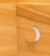 With great enthusiasm, we unveil our patented solution to visible ugly pins and metal brackets: Our universal peg system that conceals the supports for shelves and panels inside the wood, for shelves inside wood cabinets, walled pantries and between walled alcoves.